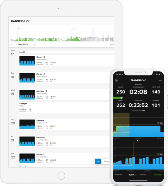Available for iOS and Android devices, the TrainerRoad mobile app brings indoor training to one convenient place. Use your favorite mobile device to train, browse workouts, select a training plan, and keep track of upcoming workouts.